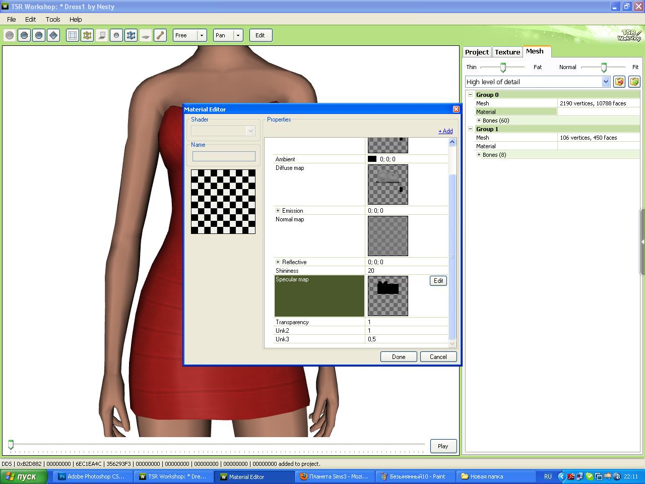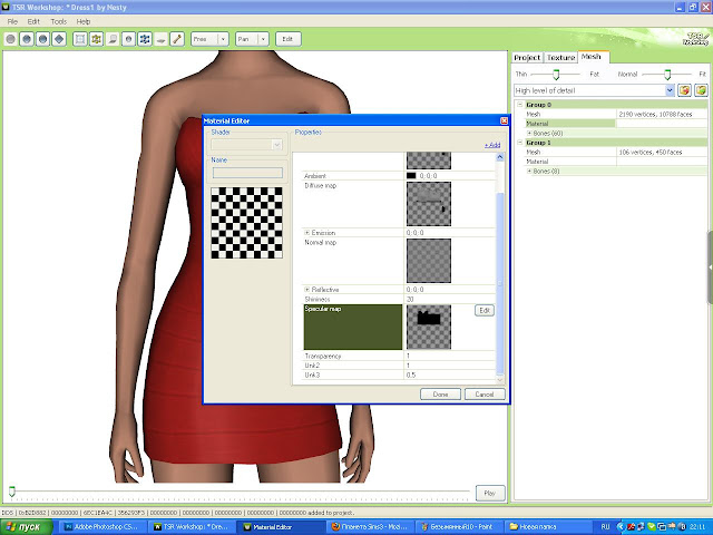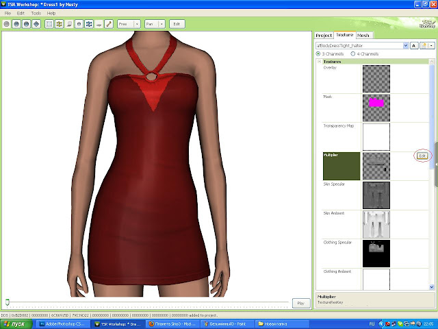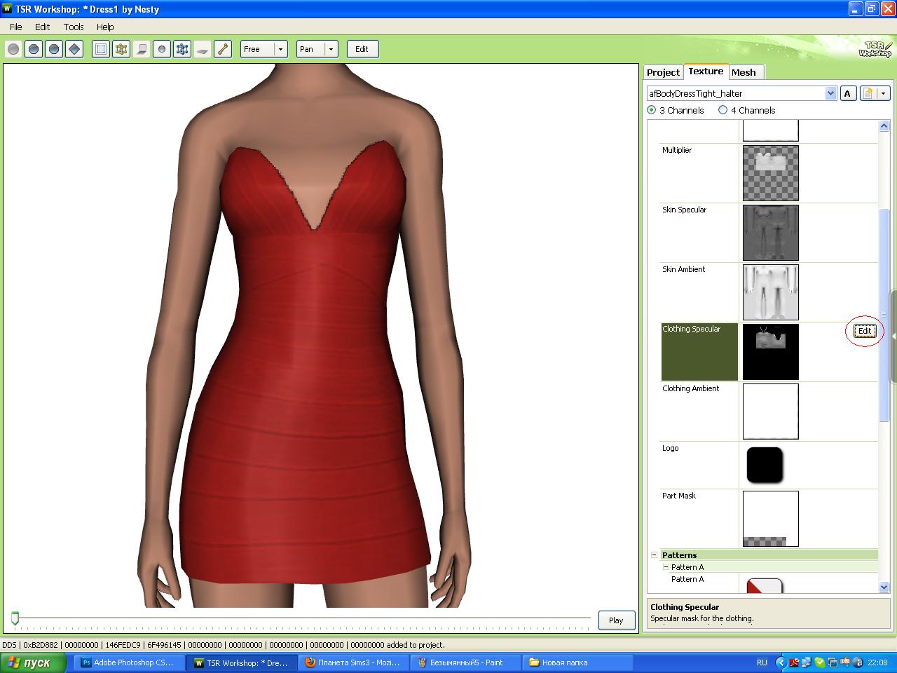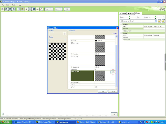 Шаг4: Там где Clothing Specular нажимаем Edit, потом переходим в ФШ, открываем нашу текстуру Multiplier и заливаем чёрным цветом. Сохраняем в dds формате и импортируем в воркшоп.