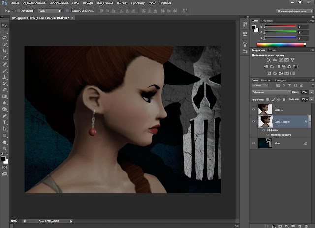 Нужно сделать тень. Делаем дубликат слоя с девушкой и