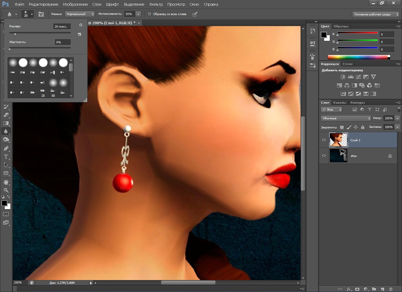 смягчите инструментом «Размытие». Я предпочитаю более аккуратную работу.