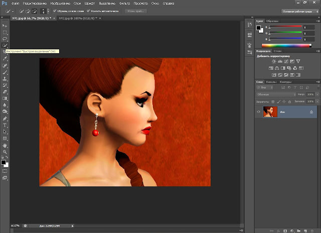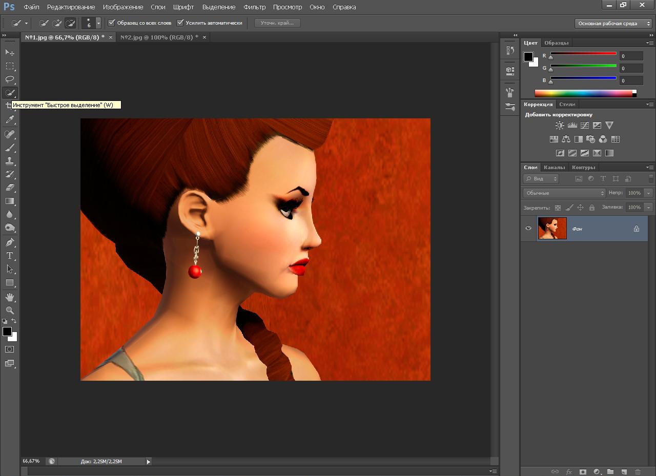 вырезаю девушку. Мне удобнее инструментом «Быстрое выделение».